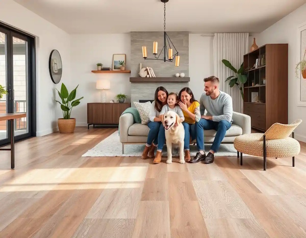 - Для дома с детьми и питомцами оптимально — ламинат 33–34 класса, винил/кварц-винил с высокой плотностью.
